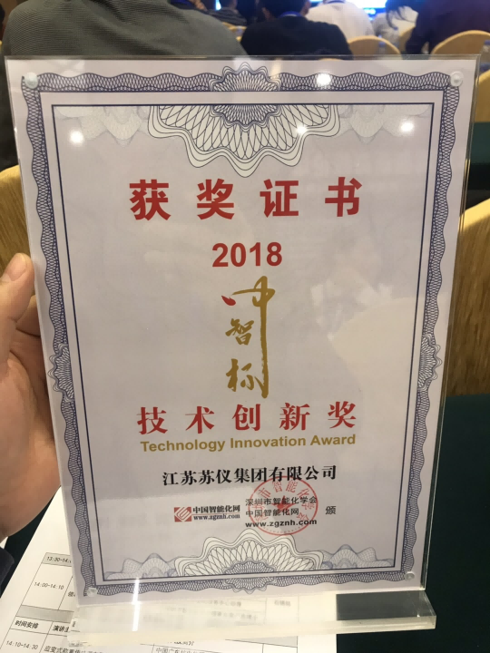 2018年11月23日下午,在深圳福田景明達酒店,由中國儀器儀表學會指導,深圳市科學技術協(xié)會主辦,深圳市智能化學會、中國智能化網承辦的“深圳第二十一屆智能化技術應用創(chuàng)新高峰論壇”之際,江蘇蘇儀集團有限公司榮獲2018“中智杯”技術創(chuàng)新獎。