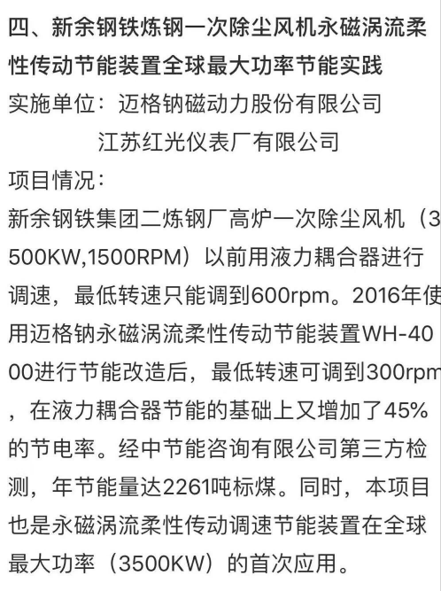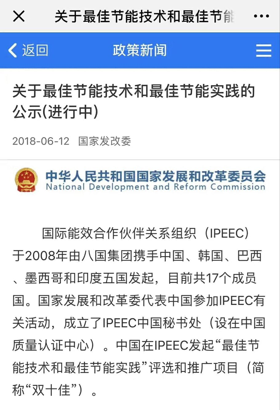 近日,我公司“一次除塵風機永磁渦流柔性傳動節能裝置”技術,獲得由國際能效合作伙伴關系組織(IPEEC)發起的“最佳節能技術和最佳節能實踐”評選和推廣項目,并在國家發改委網站予以公示。
