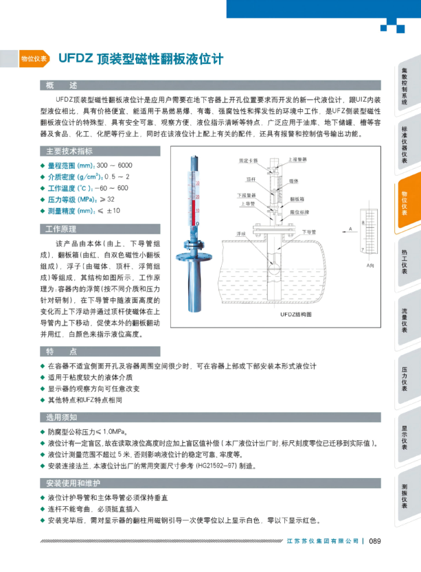 UFDZ 頂裝型磁性翻板液位計 價格: