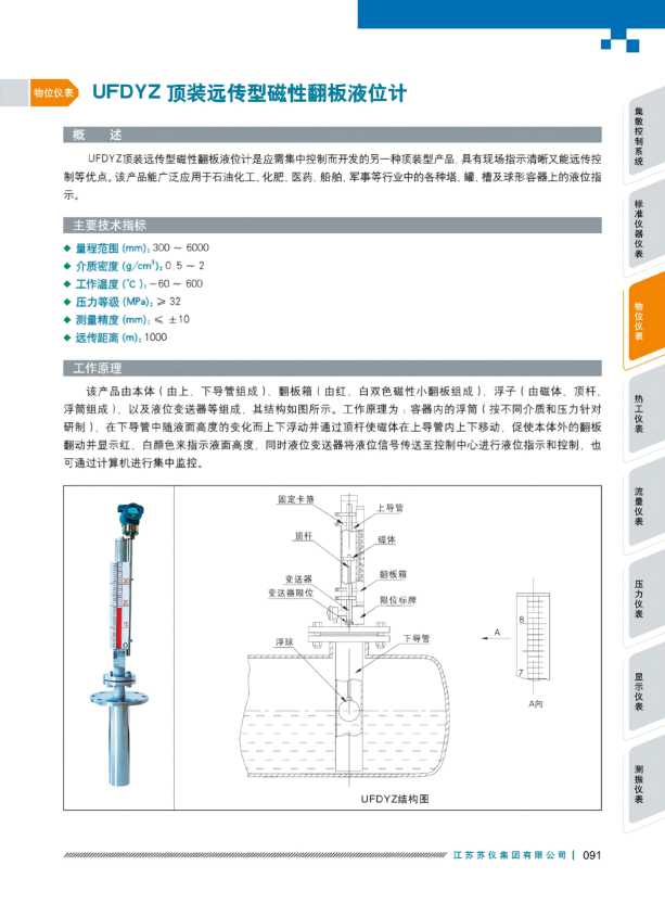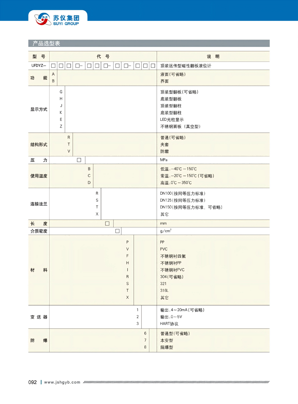 UFDYZ 頂裝遠傳型磁性翻板液位計 價格: